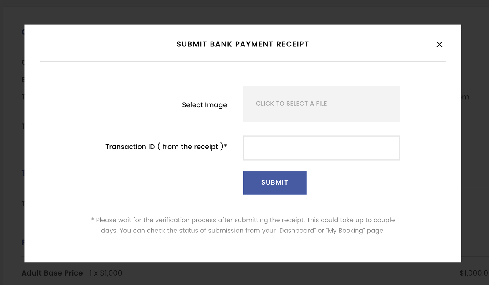 This button allows customers to submit payment receipt after they proceed the bank transfer.